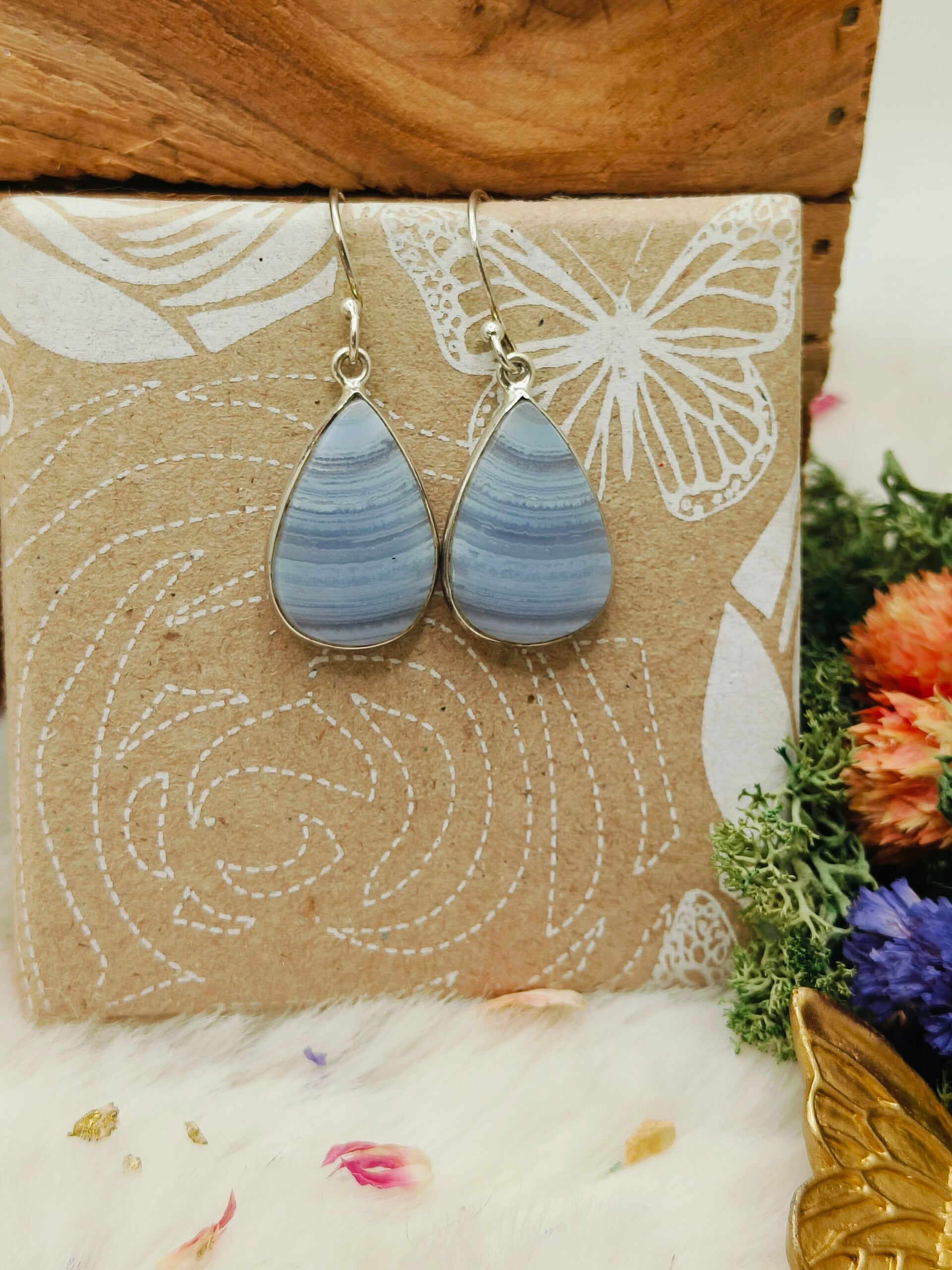 Blue lace chalcedoon oorhangers