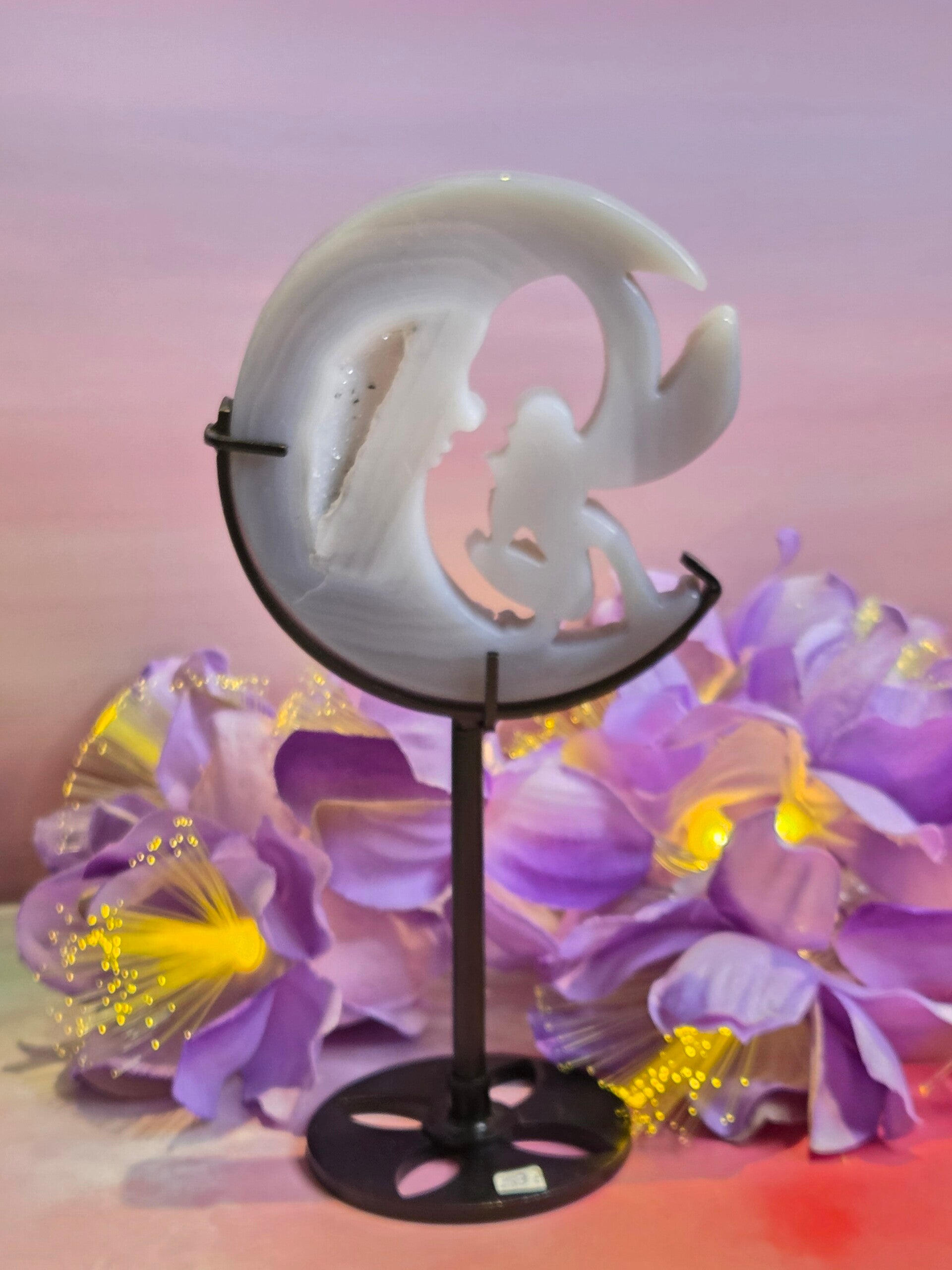 Agaat elf op maan sculptuur met houder